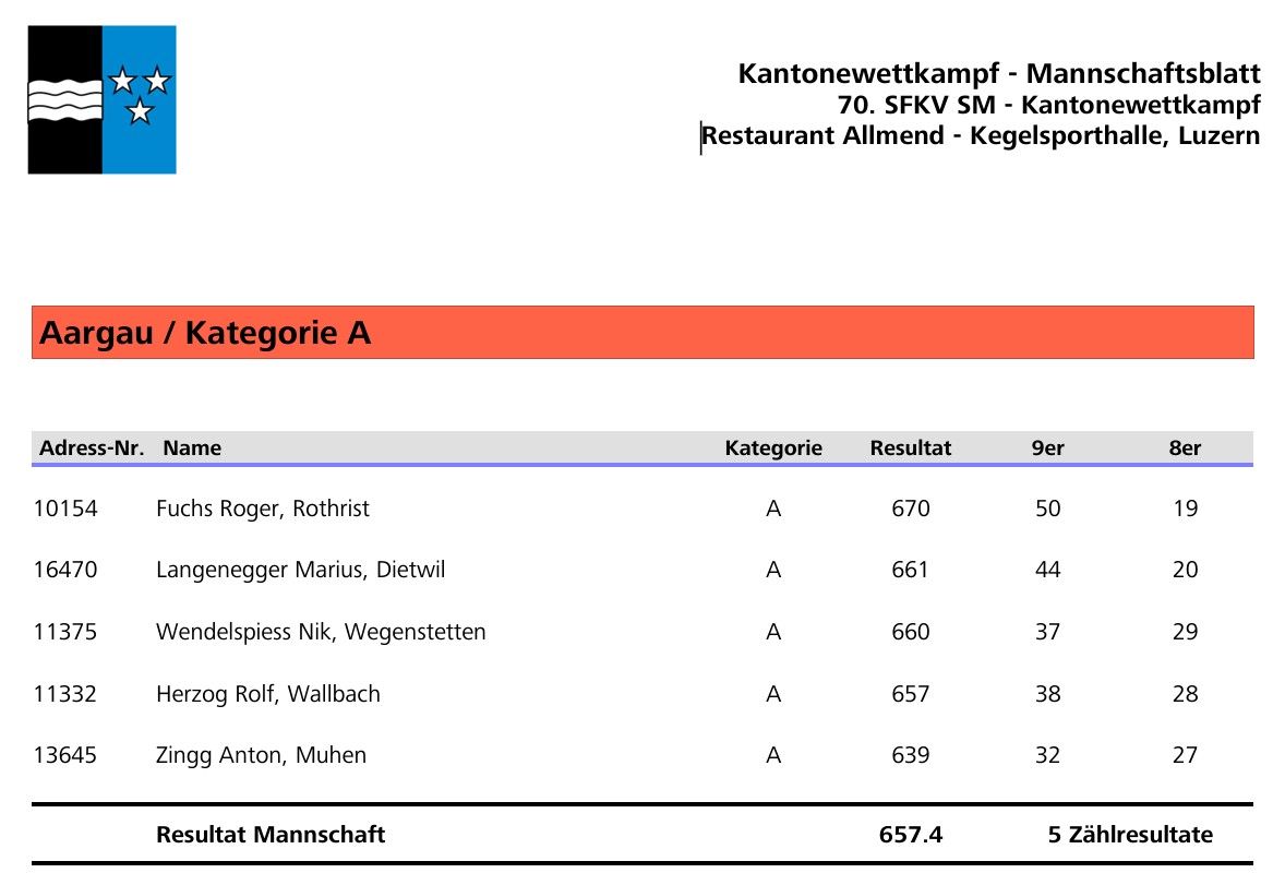 Am Samstag, 06. September wurde die 70. SM in der Kegelsporthalle Allmend Luzern mit dem Kantone Wettkampf eröffnet.