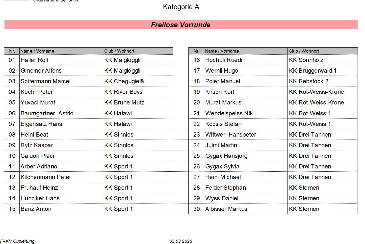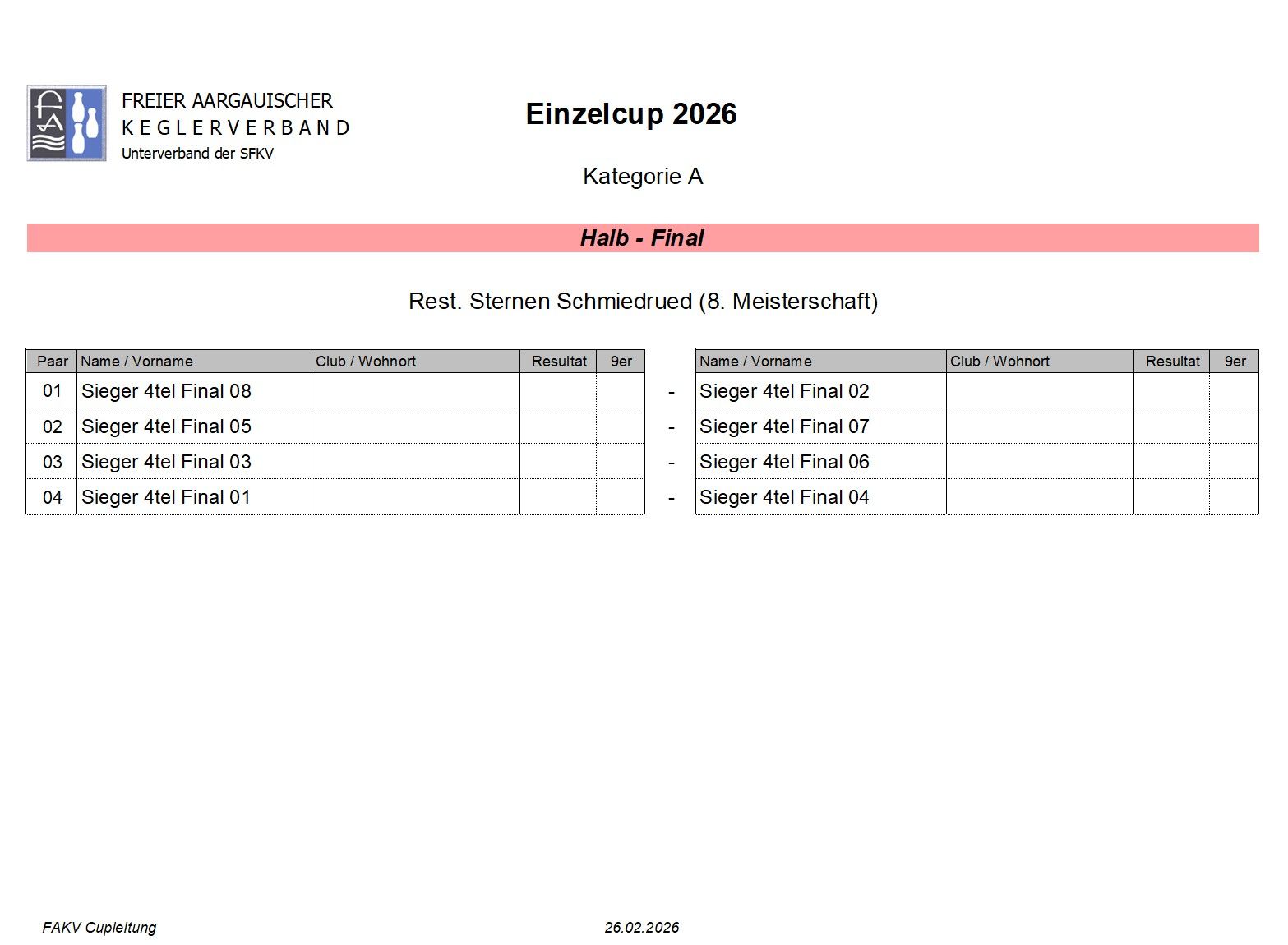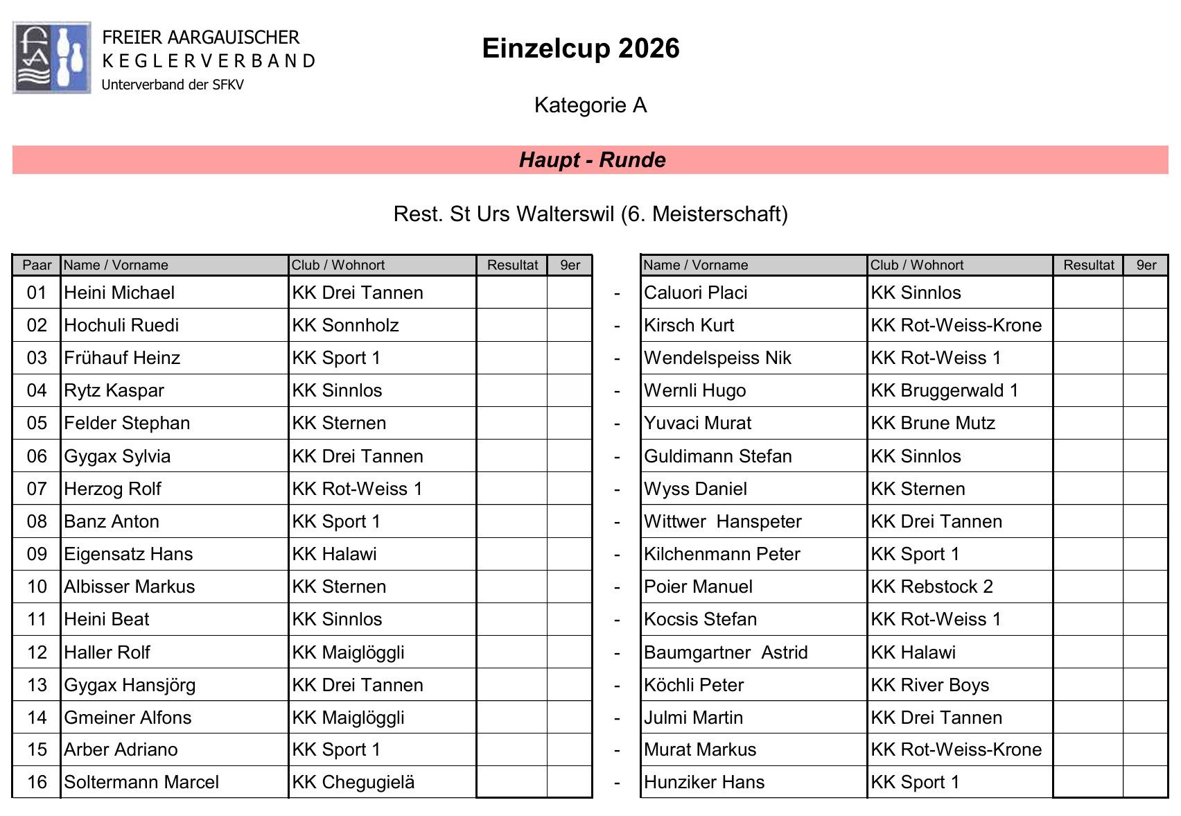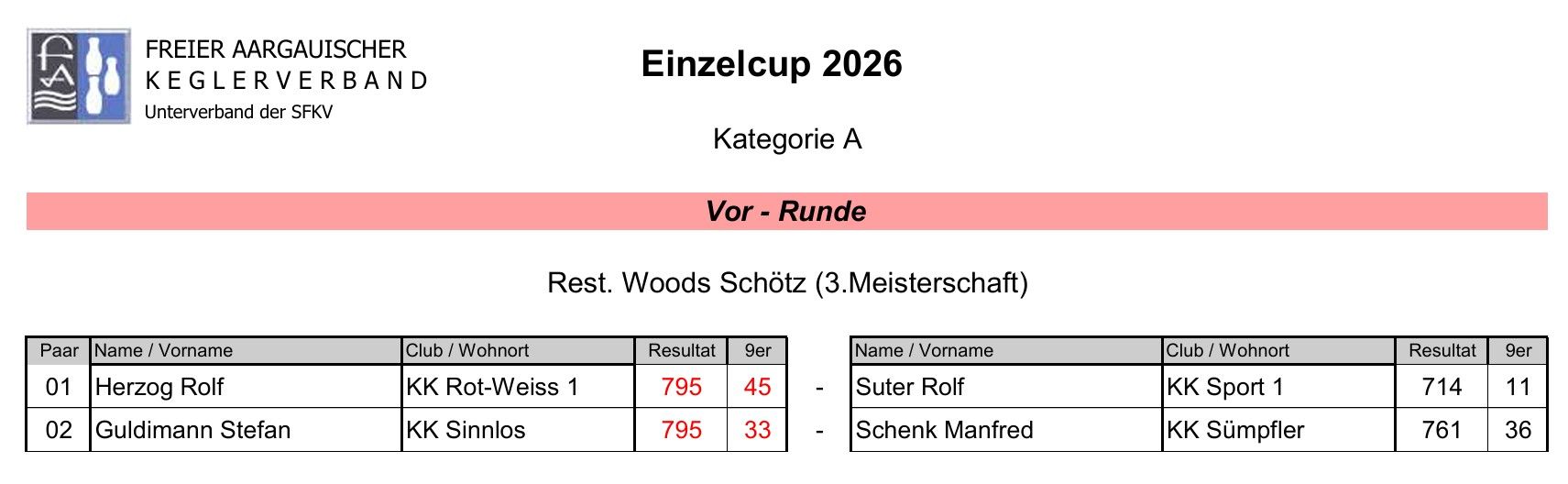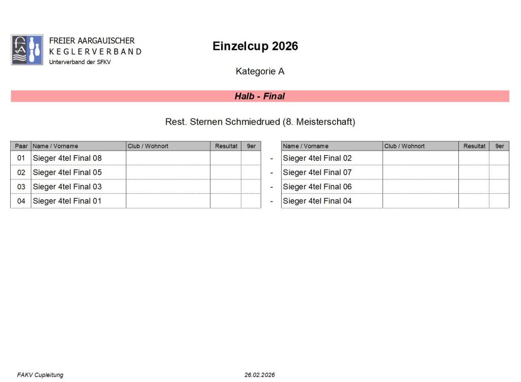 Sie sind hier: Freier Aargauischer Keglerverband » Cup » Einzelcup 2026 » Kategorie A