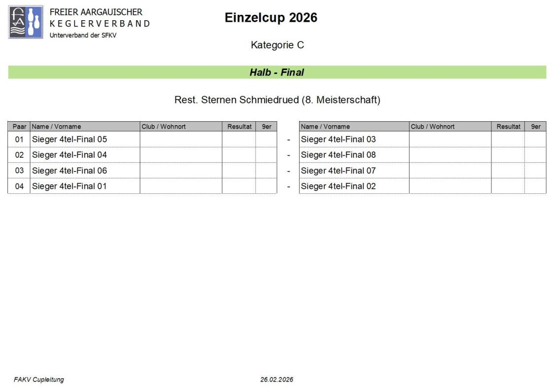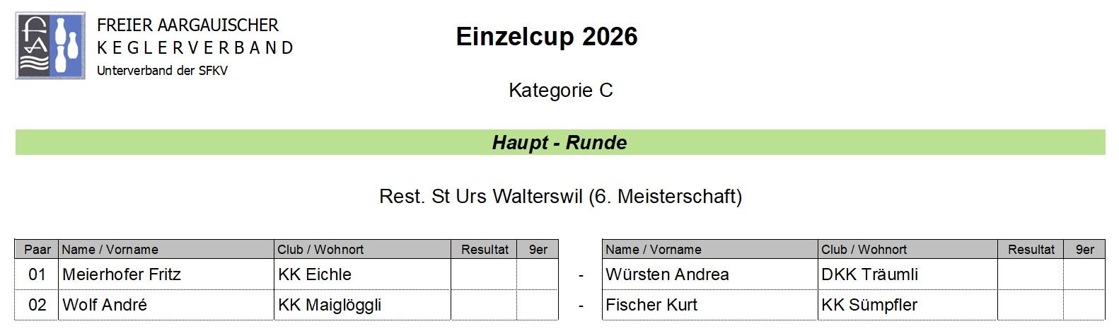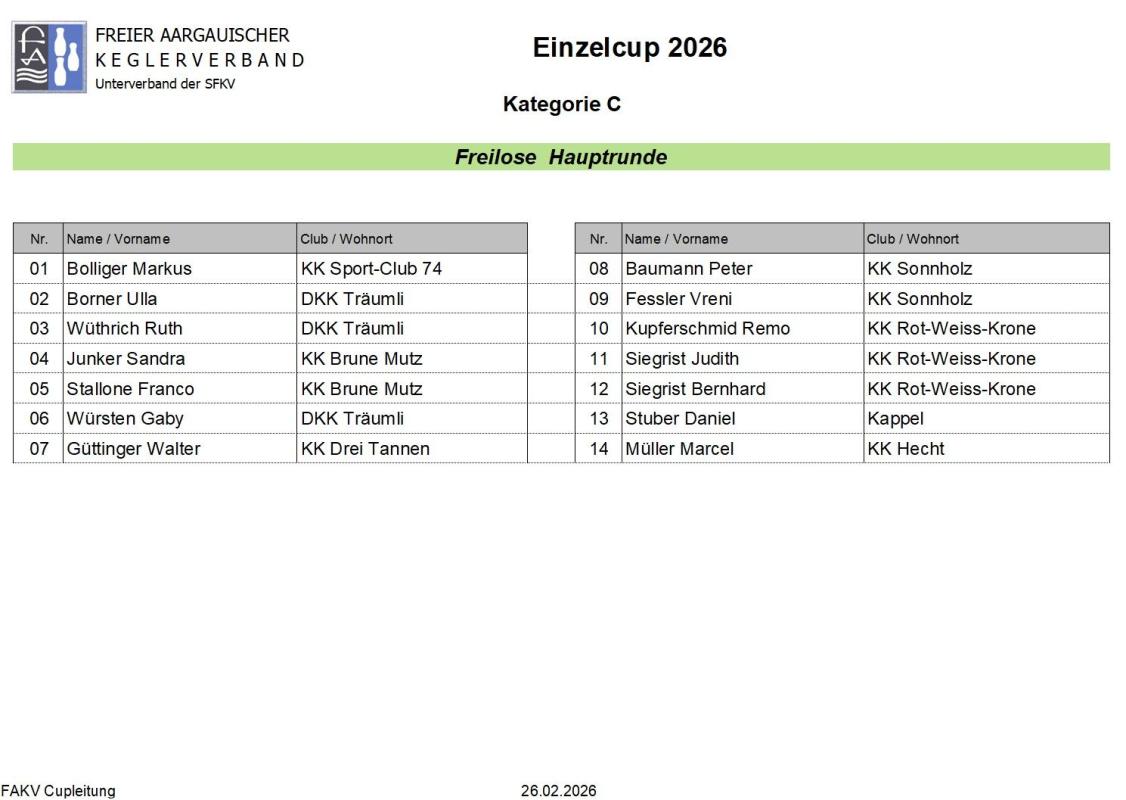 Sie sind hier: Freier Aargauischer Keglerverband » Cup » Einzelcup 2026 » Kategorie C