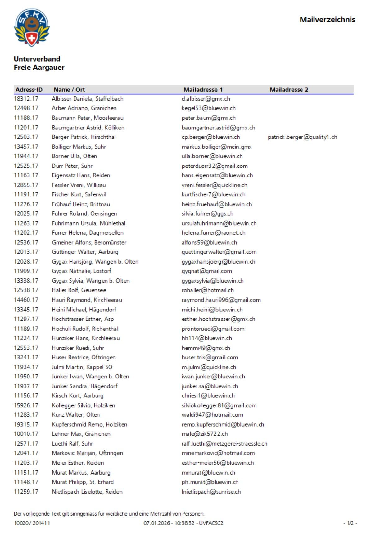 Mailverzeichnis 2026