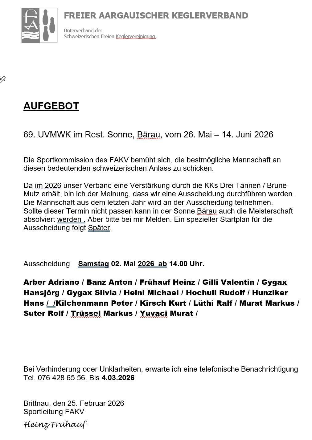 Aufgebot FAKV