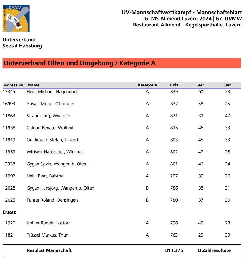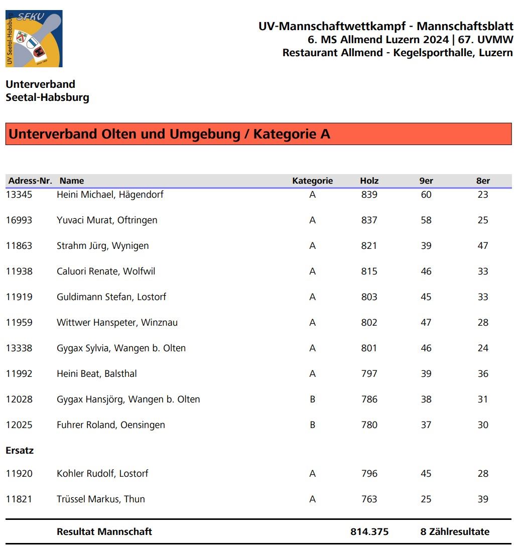 2. Rang UV Olten und Umgebung
